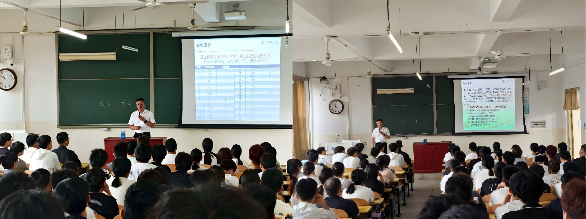 一是导学启思,锚定方向。地理信息科学系景海涛教授为地信专业新生带来了一场内容丰富、视野开阔的专业导学课。景教授紧密结合国家战略与科技前沿,系统阐述了地理信息科学的学科内涵、发展现状、前沿趋势及广泛的应用前景。讲解深入浅出,逻辑清晰,不仅让新生对“地理信息科学是什么、学什么、做什么”有了基本把握,更激发了大家对专业学习的浓厚兴趣和投身地理信息事业的使命感。