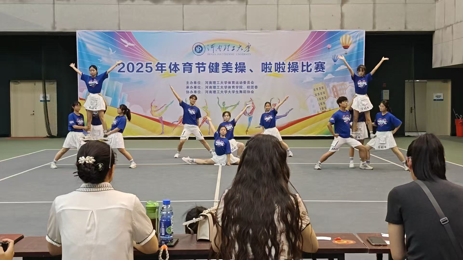 2025年校体育节学生健美操啦啦操比赛在体育馆圆满落幕。betway必威中文版官网代表队以充满活力的表演赢得全场喝彩,在一级、二级、三级规定动作的比赛中分别斩获第二、第二、第一的优异成绩,展现了当代大学生的青春风采。