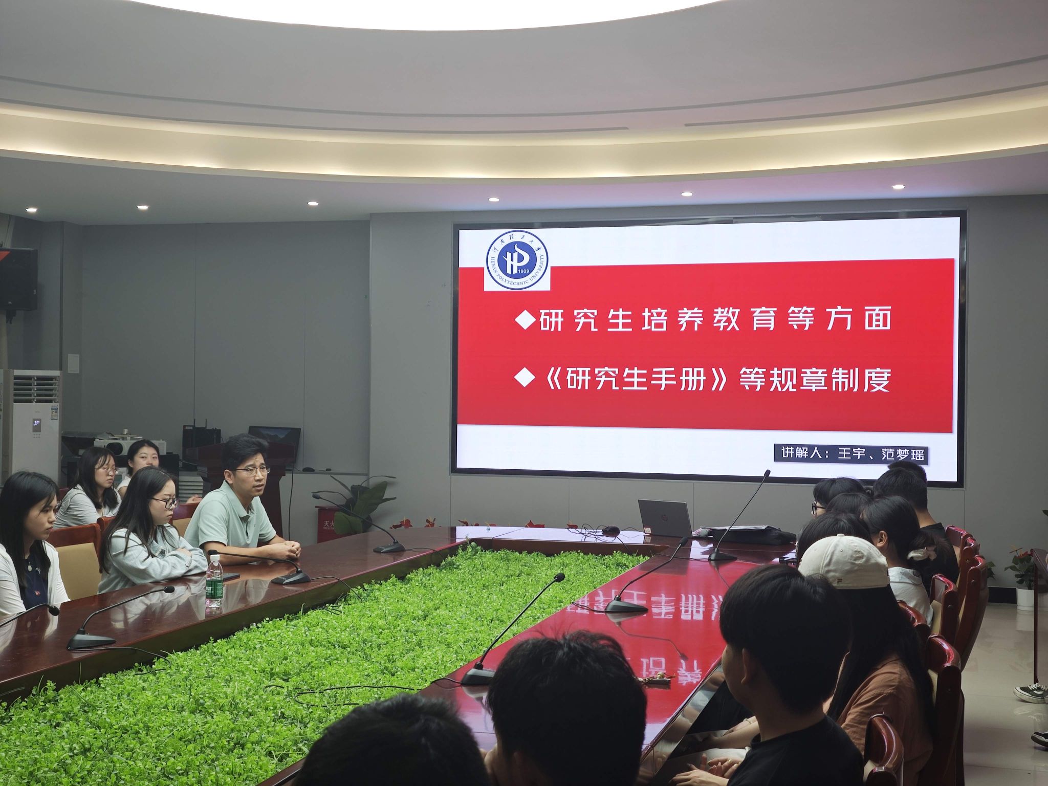 会上,柴华彬以《勇担使命,创新突破》为题寄语新生。他结合学院在智慧城市、灾害监测等领域的科研成果,鼓励同学们以“敢闯敢拼”的勇气突破舒适区,将个人研究与社会需求结合。柴华彬强调研究生要“胸怀家国”,在科研中践行测绘人的责任担当。随后,王宇就研究生培养方案及导师双向选择制度进行了全面解读。他从导师选报的具体流程、如何根据自身研究兴趣匹配导师方向,到培养周期内各个关键时间节点的注意事项等方面,为新生提供了条理清晰、实用性强的指导建议。
